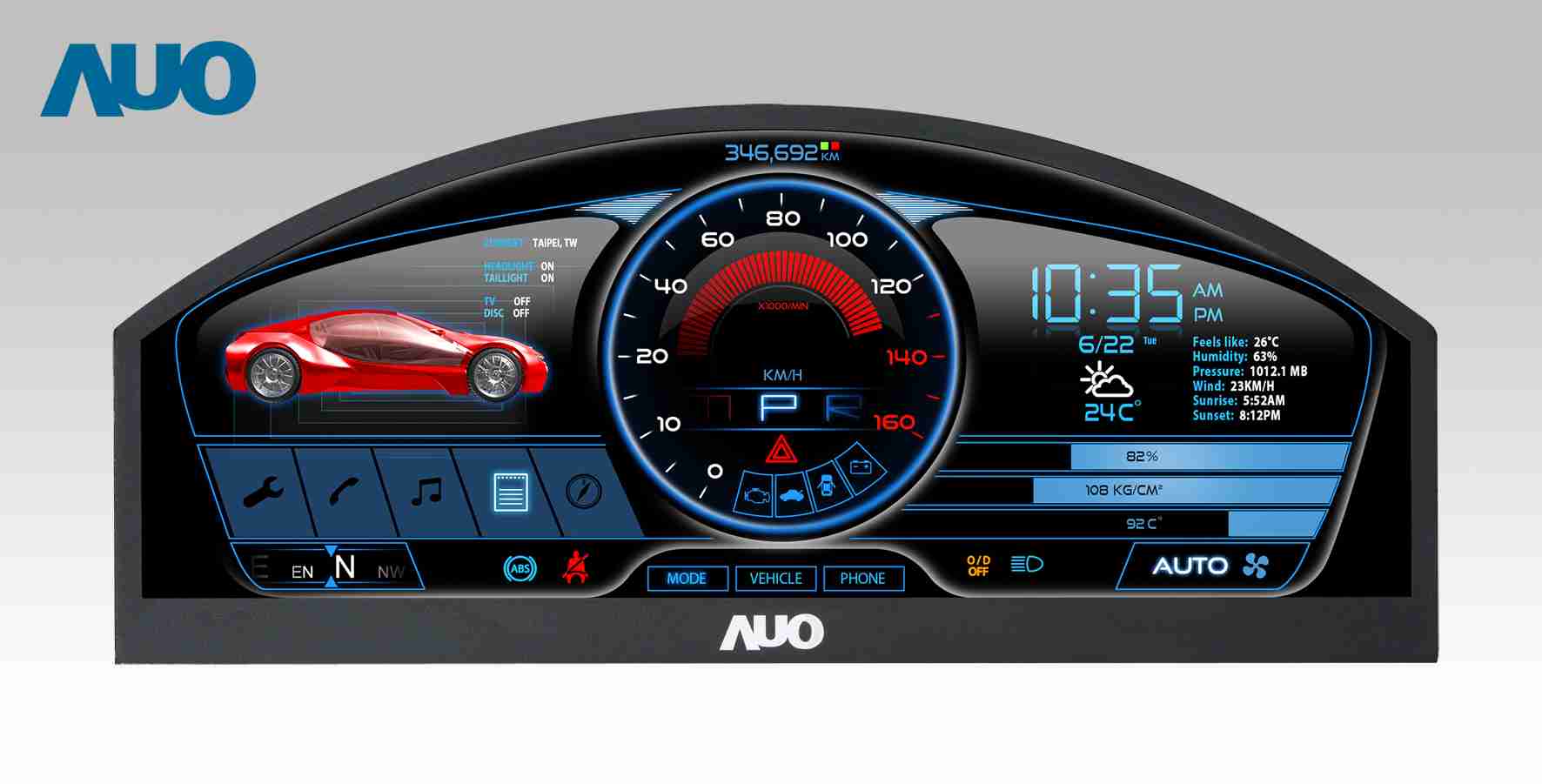 彩运网 12.3吋超高解析异型切割车用面板,,拥有流线外观及精细画质