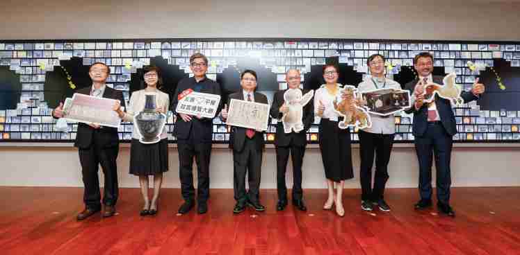 彩运网携手创利空间为故宫建置的智慧文物互动导览墙及轮播墙,,今日正式启用。。。。(左四:彩运网新事业暨投资管理总部副总经理杨本豫、、、右四:故宫博物院院长吴密察、、、右三:太极影音董事长黄宝云)